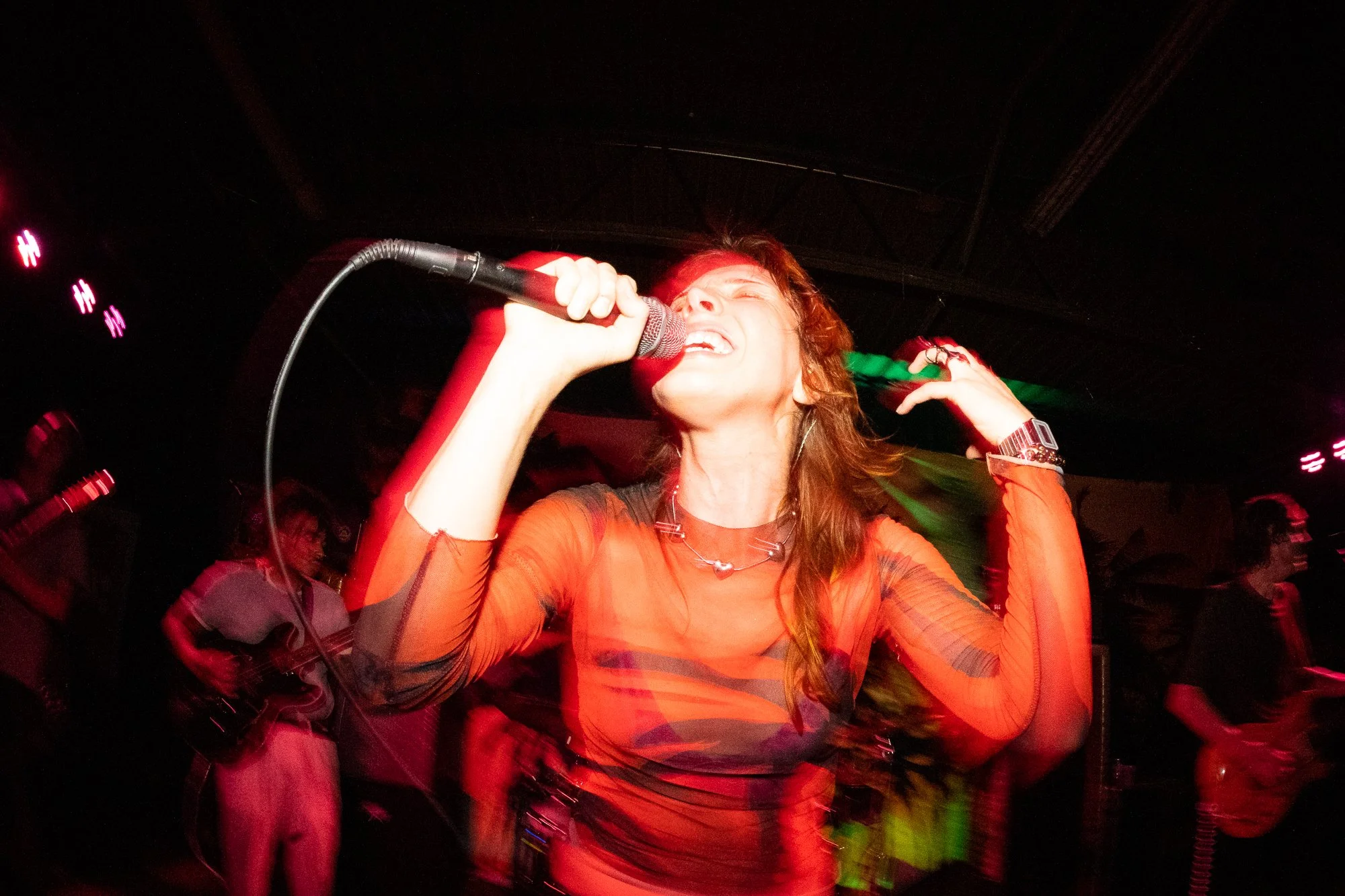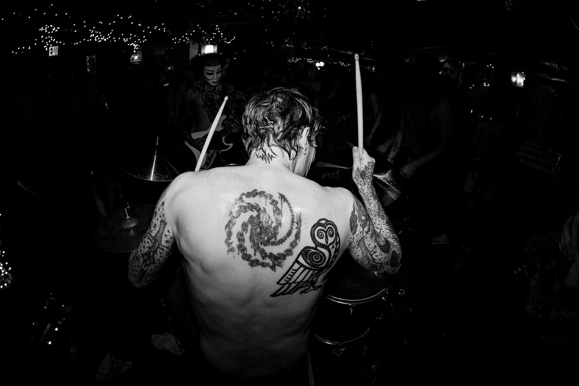 A shoe flies over the mosh pit during the Signals Etc. show at the Graveside end-of-life bash on December 17, 2024.